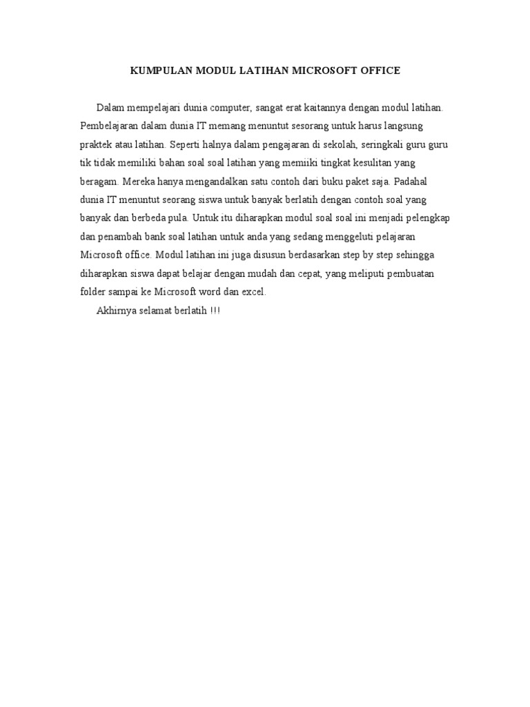 Modul Pembelajaran Microsoft Word 2007 Tingkat Dasar Pages 1 35 Flip Pdf Download Fliphtml5 from online.fliphtml5.com Tutorial microsoft word di internet sangatlah banyak jika kita mau mencarinya. Download contoh latihan soal praktek microsoft word selamat pagi kawan semua kali ini saya akan share sebuah latihan soal yang sangat mudah untuk temen temen mengembangkan kemampuan dasar tentang ms. Latihan kata dasar, kata berimbuhan awalan dan akhiran bm tahun 3 kuiz. Lembar latihan ujian praktik 2 93. Klik ikon microsoft word 1.2.menulis surat lamaran kerja untuk menulis surat lamaran kerja di microsoft word, langkahnya sebagai berikut: Latihan soal ms word materi : Contoh modul microsoft word 2013 contoh makalah docx. Download now the last version.